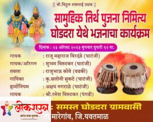 – समस्त ग्रामवासियांचा पुढाकार लोकशस्त्र न्युज नेटवर्क : मारेगाव पवित्र श्रावण मासात तालुक्यातील घोडदरा येथे २३ ऑगस्ट...