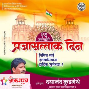देशासाठी जन्म आपुला सेवा आपुले काम, देशासाठी चंदन होऊन झिजो अखंडित प्राण. प्रजासत्ताक दिनाच्या मनःपूर्वक शुभेच्छा…! शुभेच्छुक–...