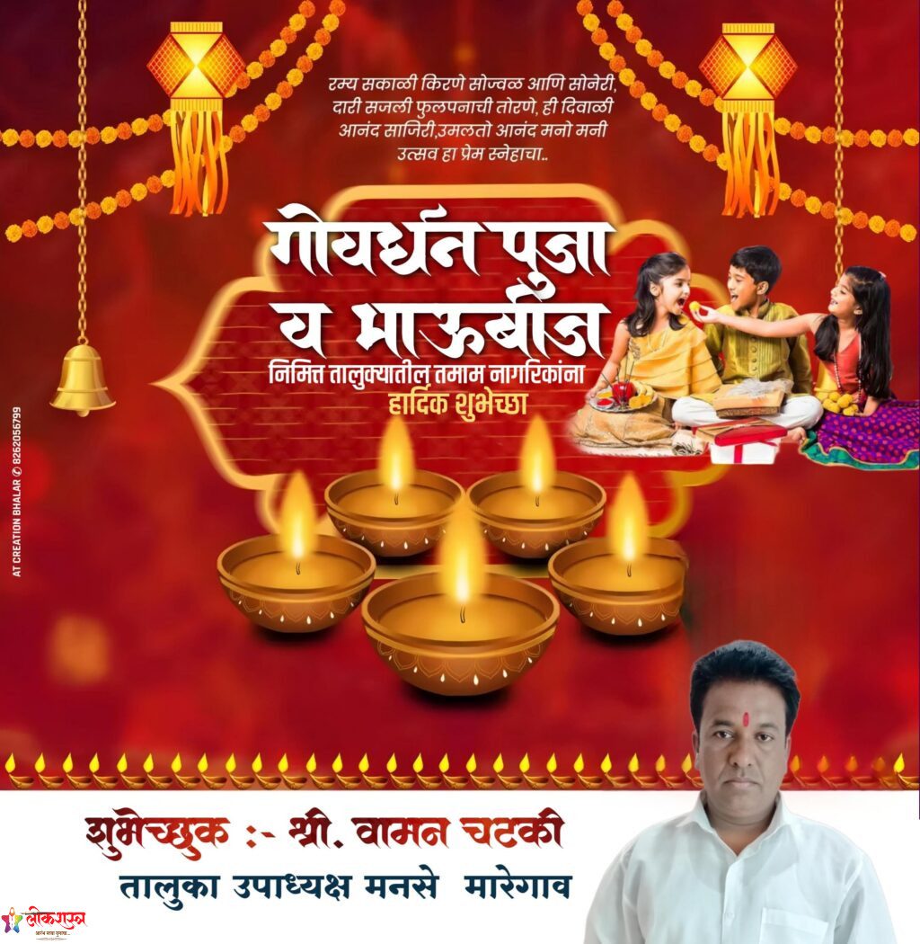आपला परीसर मारेगाव दीपावलीच्या मनःपूर्वक शुभेच्छा…! संपादक : मोरेश्वर त्रिवेणी मारोतराव ठाकरे November 3, 2024 1 min read दीपावलीच्या पावन निमित्ताने तुम्हाला आणि तुमच्या कुटुंबाला सर्वत्र सुख आणि समृद्धी मिळो…! दीपावलीच्या मनःपूर्वक शुभेच्छा…! शुभेच्छुक श्री.वामन चटकी तालुका उपाध्यक्ष मनसे,मारेगाव. Post Views: 103 Tags: chinchamandal Maregaon mns Continue Reading Previous: पहापळ येथे गळफास घेऊन इसमाची आत्महत्याNext: संजय खाडे यांनी श्री रंगनाथ स्वामी मंदिरात फोडला प्रचाराचा नारळ…! Leave a Reply Cancel replyYour email address will not be published. Required fields are marked *Comment * Name * Email * Website Save my name, email, and website in this browser for the next time I comment. Related Stories जिल्हास्तरीय विज्ञान प्रदर्शनात…बाबासाहेब देशमुख विद्यालय पहापळ चा सलग दुसऱ्या वर्षी राज्यस्तरीय झेंडा…! 1 min read आपला परीसर जिल्हास्तरीय विज्ञान प्रदर्शनात…बाबासाहेब देशमुख विद्यालय पहापळ चा सलग दुसऱ्या वर्षी राज्यस्तरीय झेंडा…! January 12, 2026 सुखद…दोन जीवांचे झाले पुनर्मिलन…! 1 min read मारेगाव सुखद…दोन जीवांचे झाले पुनर्मिलन…! December 14, 2025 पक्षविरोधी कारवायांमुळे शिवसेनेतील(शिंदे) दोन पदाधिकाऱ्यांची हकालपट्टी 1 min read मारेगाव पक्षविरोधी कारवायांमुळे शिवसेनेतील(शिंदे) दोन पदाधिकाऱ्यांची हकालपट्टी December 13, 2025