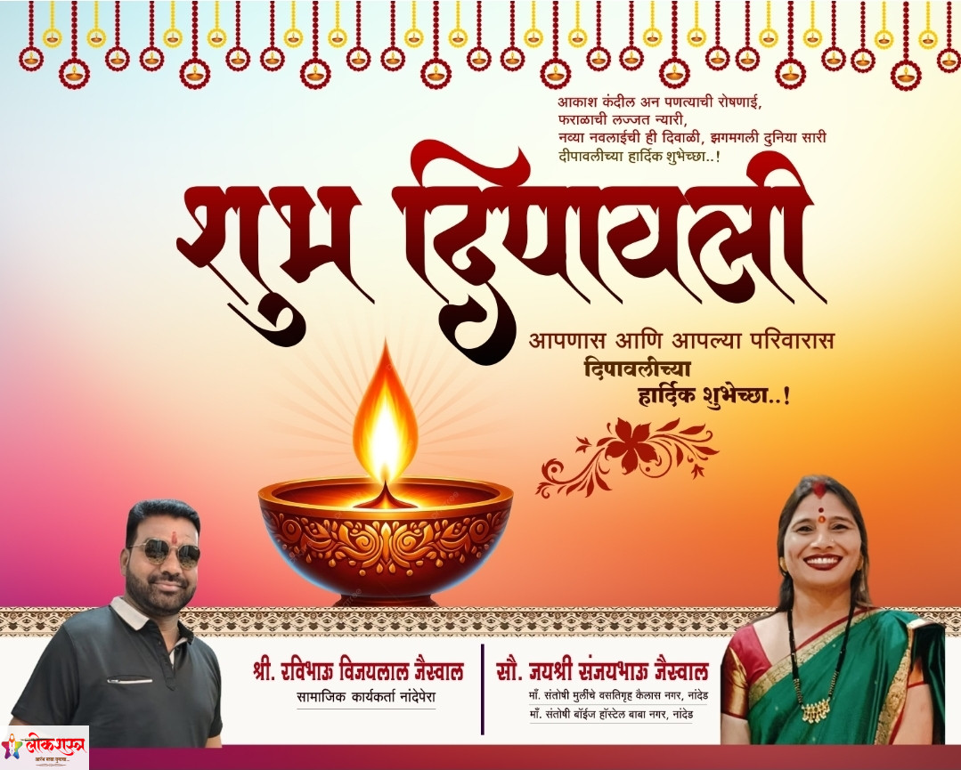 आपला परीसर मारेगाव दिपावलीच्या मनःपूर्वक शुभेच्छा…! संपादक : मोरेश्वर त्रिवेणी मारोतराव ठाकरे October 21, 2025 1 min read सण दिवाळीचा, आनंददायी क्षणांचा.. नात्यातील आपुलकीचा, उत्सव हा दिव्यांचा.. दीपावलीच्या हार्दिक शुभेच्छा…! शुभेच्छुक रविभाऊ विजयलाल जैस्वाल, सामाजिक कार्यकर्ते,नांदेपेरा. सौ.जयश्री संजयभाऊ जैस्वाल, माँ संतोषी मुलींचे वसतिगृह,नांदेड. माँ संतोषी बॉईज हॉस्टेल, बाबा नगर,नांदेड. Post Views: 51 Tags: Diwali Greeting Continue Reading Previous: वैनगंगा विद्यालयात गणित संबोध परीक्षेला विद्यार्थ्यांचा उत्स्फूर्त प्रतिसादNext: पक्षविरोधी कारवायांमुळे शिवसेनेतील(शिंदे) दोन पदाधिकाऱ्यांची हकालपट्टी Leave a Reply Cancel replyYour email address will not be published. Required fields are marked *Comment * Name * Email * Website Save my name, email, and website in this browser for the next time I comment. Related Stories जिल्हास्तरीय विज्ञान प्रदर्शनात…बाबासाहेब देशमुख विद्यालय पहापळ चा सलग दुसऱ्या वर्षी राज्यस्तरीय झेंडा…! 1 min read आपला परीसर जिल्हास्तरीय विज्ञान प्रदर्शनात…बाबासाहेब देशमुख विद्यालय पहापळ चा सलग दुसऱ्या वर्षी राज्यस्तरीय झेंडा…! January 12, 2026 सुखद…दोन जीवांचे झाले पुनर्मिलन…! 1 min read मारेगाव सुखद…दोन जीवांचे झाले पुनर्मिलन…! December 14, 2025 पक्षविरोधी कारवायांमुळे शिवसेनेतील(शिंदे) दोन पदाधिकाऱ्यांची हकालपट्टी 1 min read मारेगाव पक्षविरोधी कारवायांमुळे शिवसेनेतील(शिंदे) दोन पदाधिकाऱ्यांची हकालपट्टी December 13, 2025
