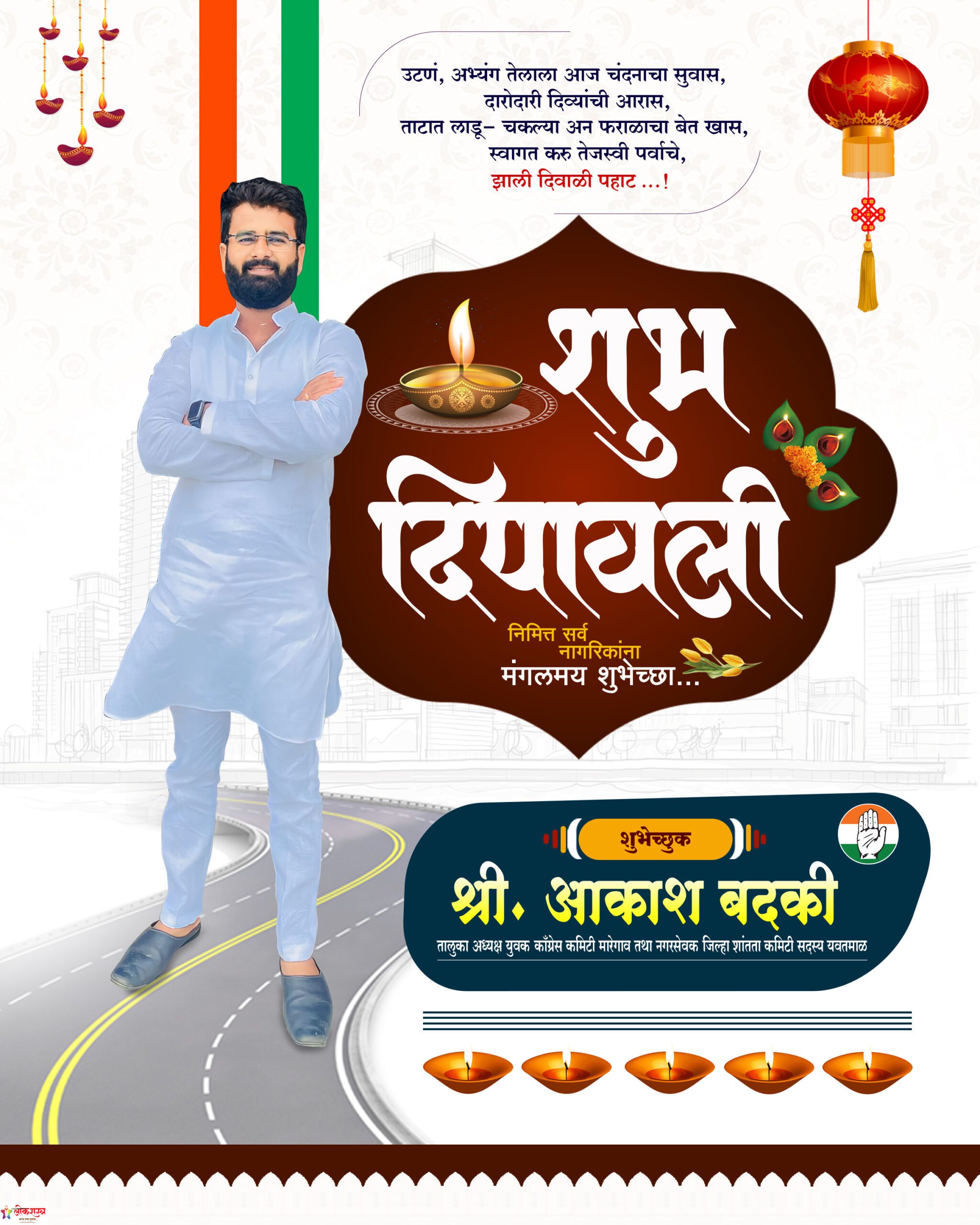आपला परीसर मारेगाव दिवाळीच्या सर्वांना हार्दिक शुभेच्छा…! संपादक : मोरेश्वर त्रिवेणी मारोतराव ठाकरे November 12, 2023 1 min read चिमूटभर माती म्हणे मी होईन पणती,टीचभर कापूस म्हणे मी होईन वाती,थेंबभर तेल म्हणे मी होईन साथी,ठिणगी पेटताच फुलतील नव्या ज्योती… अशीच याजसारखी फुलत जावी आपली नाती…! दिपावली निमित्त हार्दिक शुभेच्छा…! Post Views: 191 Tags: Congress diwali Greetings Maregaon Continue Reading Previous: दीपावलीच्या मनःपूर्वक शुभेच्छा…!Next: दिवाळीच्या सर्वांना हार्दिक शुभेच्छा…! Leave a Reply Cancel replyYour email address will not be published. Required fields are marked *Comment * Name * Email * Website Save my name, email, and website in this browser for the next time I comment. Related Stories जिल्हास्तरीय विज्ञान प्रदर्शनात…बाबासाहेब देशमुख विद्यालय पहापळ चा सलग दुसऱ्या वर्षी राज्यस्तरीय झेंडा…! 1 min read आपला परीसर जिल्हास्तरीय विज्ञान प्रदर्शनात…बाबासाहेब देशमुख विद्यालय पहापळ चा सलग दुसऱ्या वर्षी राज्यस्तरीय झेंडा…! January 12, 2026 सुखद…दोन जीवांचे झाले पुनर्मिलन…! 1 min read मारेगाव सुखद…दोन जीवांचे झाले पुनर्मिलन…! December 14, 2025 पक्षविरोधी कारवायांमुळे शिवसेनेतील(शिंदे) दोन पदाधिकाऱ्यांची हकालपट्टी 1 min read मारेगाव पक्षविरोधी कारवायांमुळे शिवसेनेतील(शिंदे) दोन पदाधिकाऱ्यांची हकालपट्टी December 13, 2025