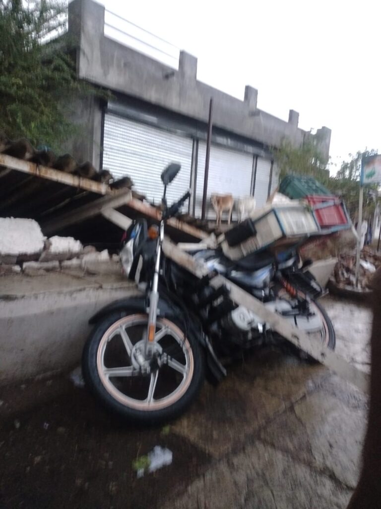 यात प्रवासी निवाऱ्यात आश्रय घेत उभे असलेले काही प्रवासी थोडक्यात बचावले असले तरी प्रवासी निवाऱ्या शेजारी उभी असलेली एका पाणीपुरी चालकाची दुचाकी प्रवासी निवाऱ्या खाली आल्याने त्यांचे आर्थिक नुकसान झाले असुन पान टपरी व ऑनलाईन काम करणाऱ्या एका दुकानाचेही किरकोळ नुकसान झाले आहे.