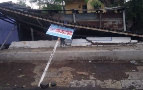 दरम्यान ३० एप्रिल रोजी सायंकाळी साडेसहा वाजे दरम्यान जोरदार वादळी वाऱ्याने सदर प्रवासी निवारा कोलमडून पडला.