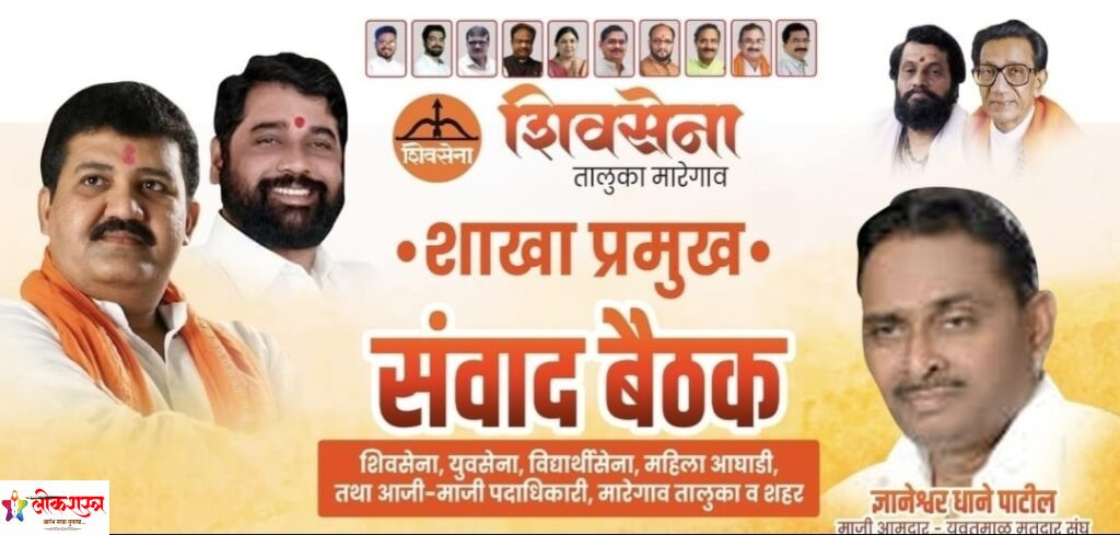 सदर संवाद सभा माजी आमदार ज्ञानेश्वर धाने पाटील, शिवसेना पश्चिम विदर्भ समन्वयक पराग पिंगळे, लोकसभा समन्वय माजी आमदार विश्वास नांदेकर जिल्हासंपर्क प्रमुख श्रीधर मोहोड व हरीहर लिंगणवार, जिल्हाप्रमुख राजुदास जाधव, सह संपर्कप्रमुख विनोद मोहितकर, उपजिल्हा प्रमुख सुधकर गोरे, महिला आघाडी संघटिका वैशाली मासाळ, युवसेना लोकसभा अध्यक्ष विशाल गणात्रा, कृषी उत्पन्न बाजार समिती उपसभापती जीवन काळे, या सर्व पाहुण्यांच्या उपस्थितीत होणार असुन मारेगाव तालुकाप्रमुख ,शहर प्रमुख, महिला आघाडी पदाधिकारी, युवसेना पदाधिकारी तालुका कार्यकारिणीचे सर्वच पदाधिकारी आजी माजी लोकप्रतिनिधी, पदाधिकारी व सर्व शिवसेना शाखा अध्यक्ष (प्रमुख) व कार्यकर्ते यांनी मोठ्या संख्येने उपास्थित राहावे असे आवाहन मारेगांव तालुका शिवसेनेचे (शिंदे) विशाल किन्हेकर यांनी केले आहे.