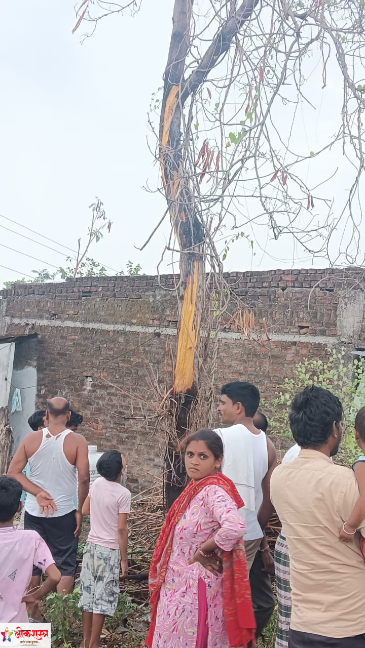 याच वेळी विजेचा प्रचंड कडकडाट झाला आणि चोपण येथील बंडु खीरटकर यांच्या खाली जागेवर असलेल्या सुबाभळीच्या झाडावर वीज कडकडाटासह कोसळली. ज्या ठीकाणी विज कोसळली त्या जागेलगत असलेल्या घरातील व्यक्तींना काही वेळ धक्का बसला. विज कोसळल्यामुळे काही घरातील विद्युत उपकरणे निकामी झाल्याचे सुतोवाच आहे. वीज कोसळली तेव्हा त्या ठिकाणी लख्ख प्रकाश पडला असल्याचे सांगीतले जात असुन, सुदैवाने पाऊस सुरु असल्याने बाहेर कुणीही नव्हते त्यामुळे जीवितहानी टळली.